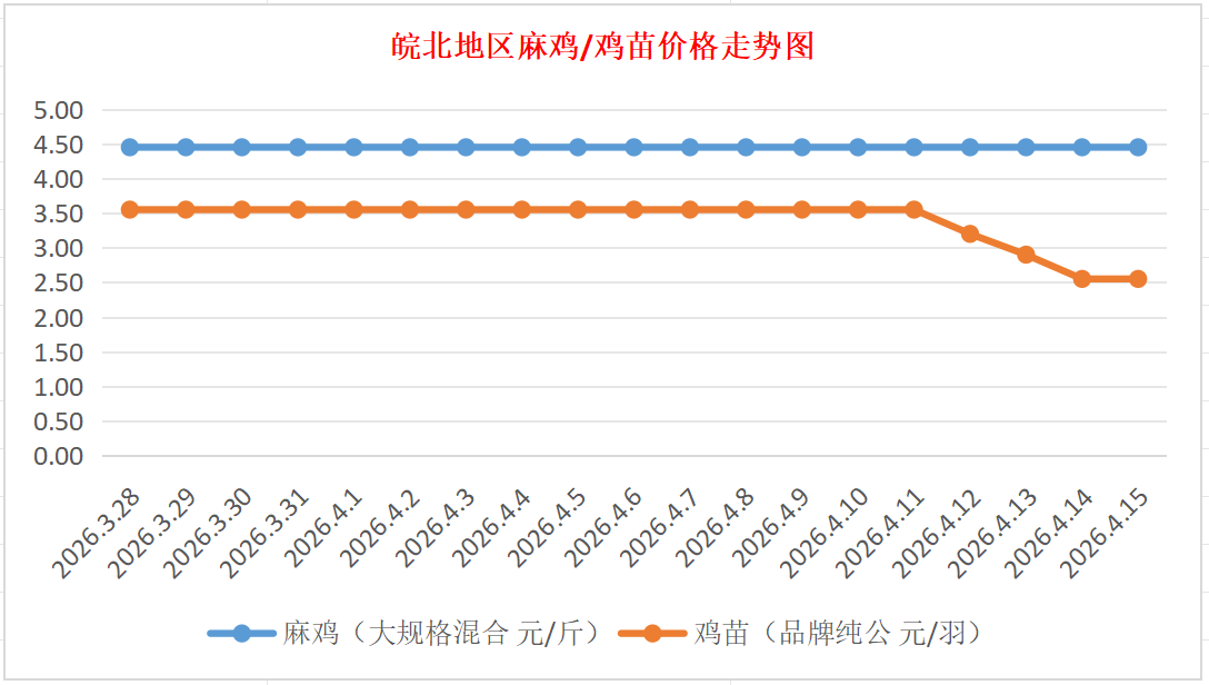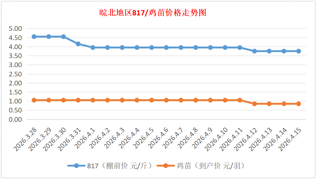 鸡病专业网独家信息:2026年4月15日皖北地区817-麻鸡行情最新走势