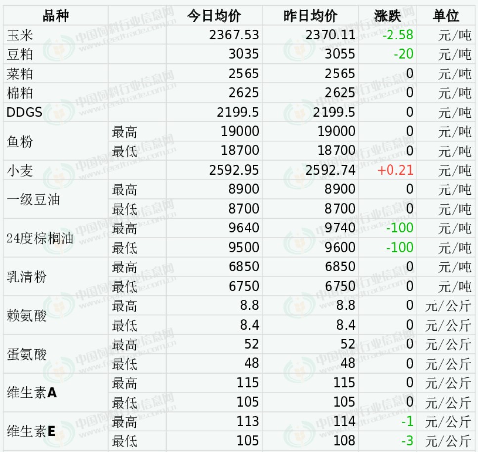 2026年4月14日国内饲料原料行情汇总