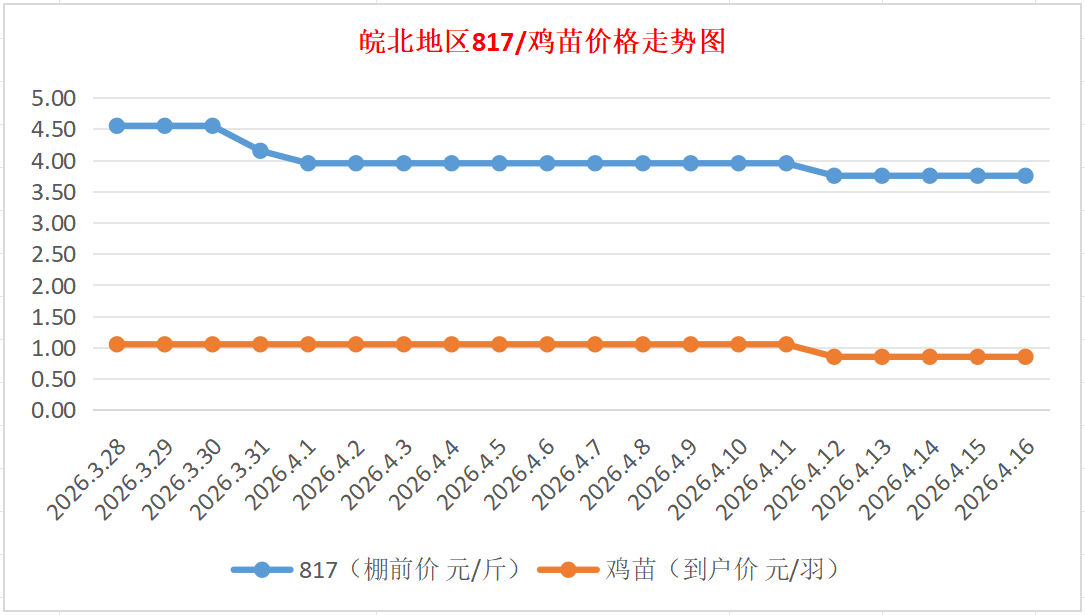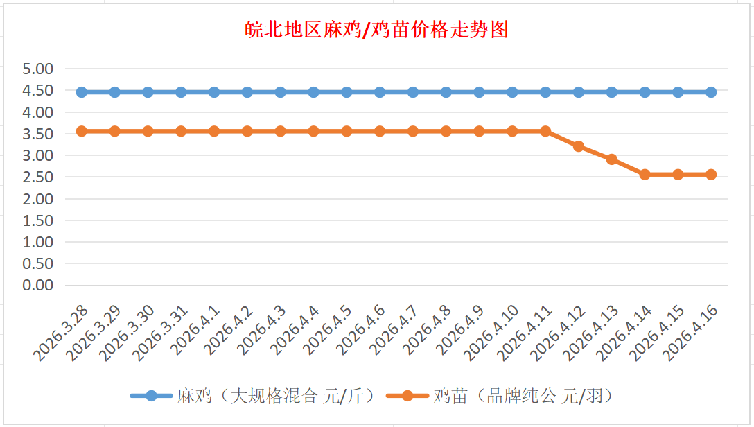鸡病专业网独家信息:2026年4月16日皖北地区817-麻鸡行情最新走势