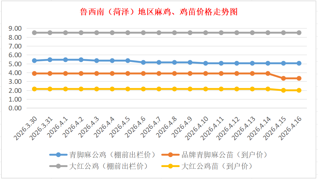 4月16日鲁西南(菏泽)地区麻鸡、鸡苗价格行情