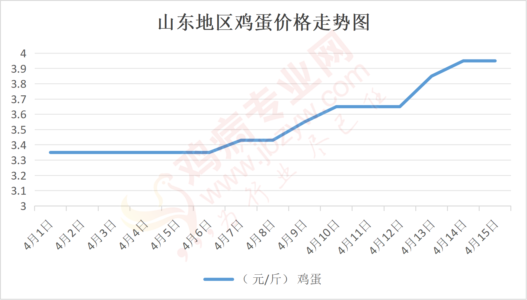 鸡病专业网消息:4月15日,山东地区莱阳鸡蛋4元/斤,稳;青岛鸡蛋4元/斤,稳;诸城鸡蛋3.95元/斤,稳;安丘鸡蛋3.9元/斤,稳;昌乐鸡蛋3.9元/斤,稳;寿光鸡蛋3.9元/斤,稳;昌邑鸡蛋3.9元/斤,稳;高密鸡蛋3.95元/斤,稳;青州鸡蛋3.9元/斤,稳;临朐鸡蛋3.9元/斤,稳;莱州鸡蛋4元/斤,稳;威海鸡蛋4元/斤,稳;临沭鸡蛋3.9元/斤,稳;沂水鸡蛋3.9元/斤,稳;沂南鸡蛋3.9元/斤,稳;莒南鸡蛋3.9元/斤,稳;兰陵县鸡蛋3.9元/斤,稳;日照鸡蛋3.9元/斤,稳;莒县鸡蛋3.9元/斤,稳;日照辛萁商贸鸡蛋3.9元/斤,稳;泗水鸡蛋价格117元/30斤,稳;济宁、汶上鸡蛋价格117元/30斤,稳;梁山、东平红蛋价格117元/30斤,稳;枣庄滕州地区鸡蛋混码主流到户118元/30斤,稳;泰安地区新泰鸡蛋价格117元/30斤,稳;菏泽地区曹县主流到户117元/30斤,稳;成武鸡蛋价格117元/30斤,稳;单县到户117元/30斤,稳;聊城莘县117元/30斤,稳;莱芜鸡蛋175元/45斤,稳;济南鸡蛋175元/45斤,稳;德州鸡蛋156元/40斤,稳;滨州鸡蛋156元/40斤,稳。
