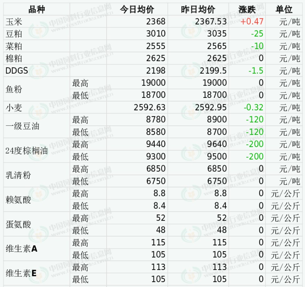 2026年4月15日国内饲料原料行情汇总
