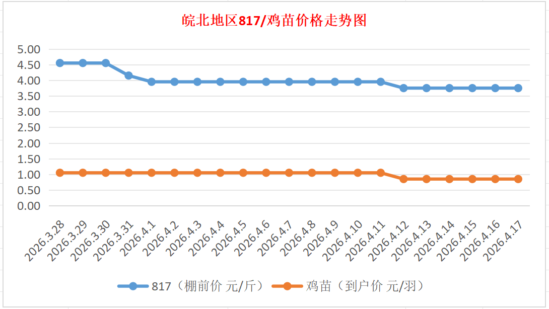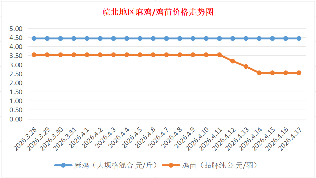 鸡病专业网独家信息:2026年4月17日皖北地区817-麻鸡行情最新走势