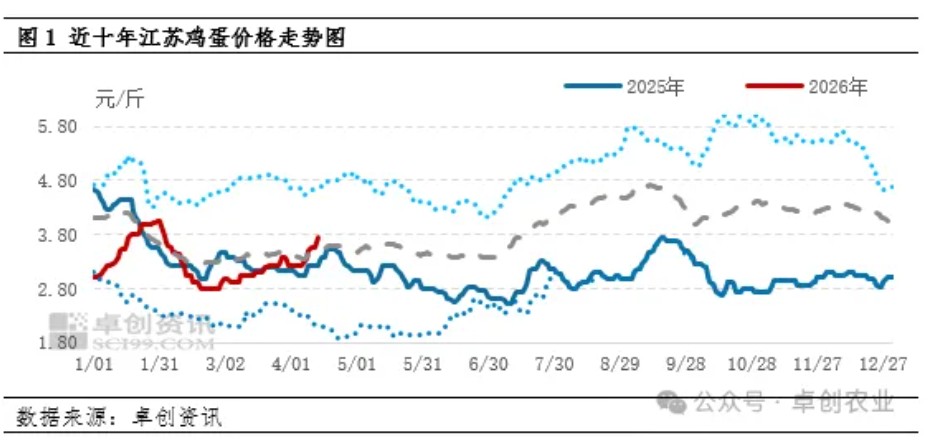【导语】随着市场需求进一步提升,业者参市情绪较上月改善,鸡蛋价格在4月中上旬维持上涨走势。目前来看,三月三、五一等节日因素对需求仍有利多拉动,或短期内对鸡蛋价格仍有支撑,但随着价格涨至阶段性高位,临近月末省内均价或存下滑风险。
