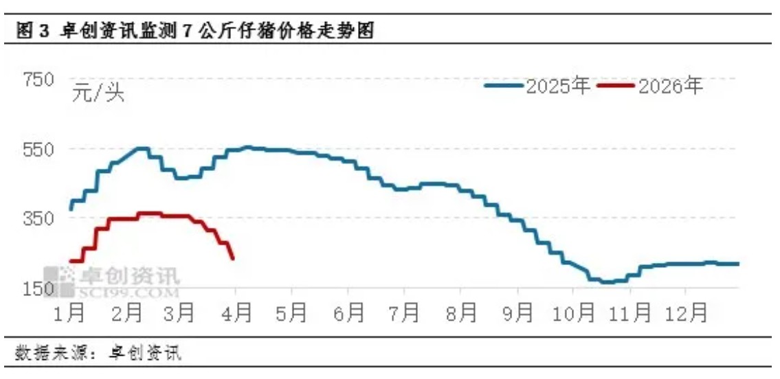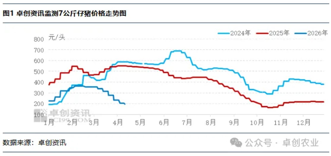 2026年国内生猪市场走弱,价格接连创新低,养殖行业陷入深度亏损局面,市场信心普遍偏弱。在产能集中释放、出栏压力加大的背景下,仔猪市场也呈现出反季节下跌的异常行情,供需两端均表现低迷。不过随着前期产能调整逐步显现效果,叠加养殖端出栏节奏变化,预计未来一两个月猪市下行压力将有所缓解,生猪及仔猪价格有望逐步企稳并迎来修复空间。