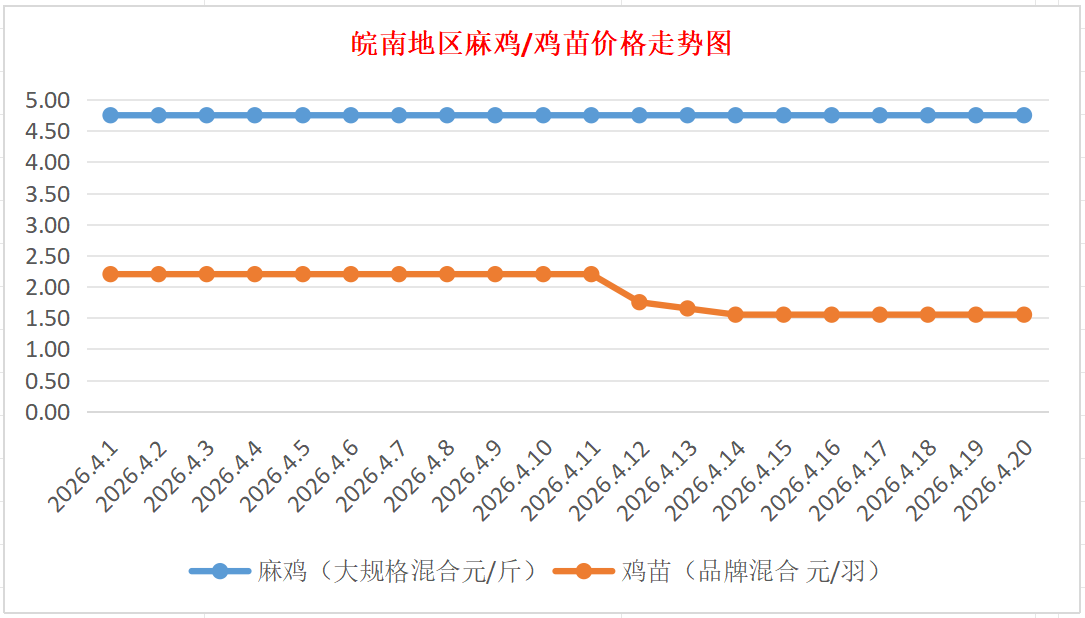 鸡病专业网独家信息:2026年4月20日皖南地区817-麻鸡行情最新走势