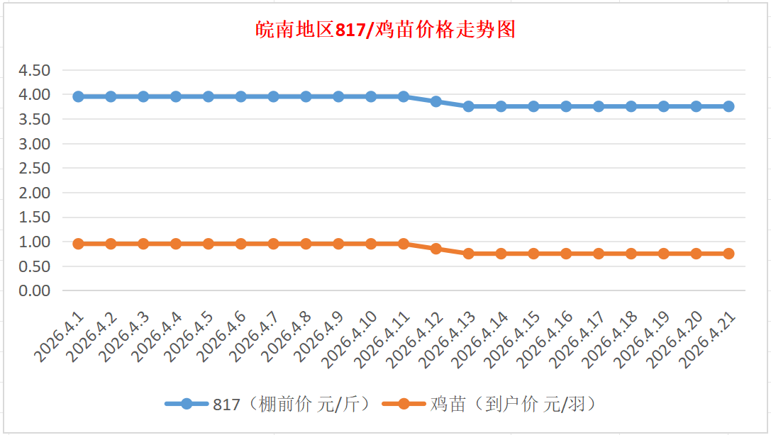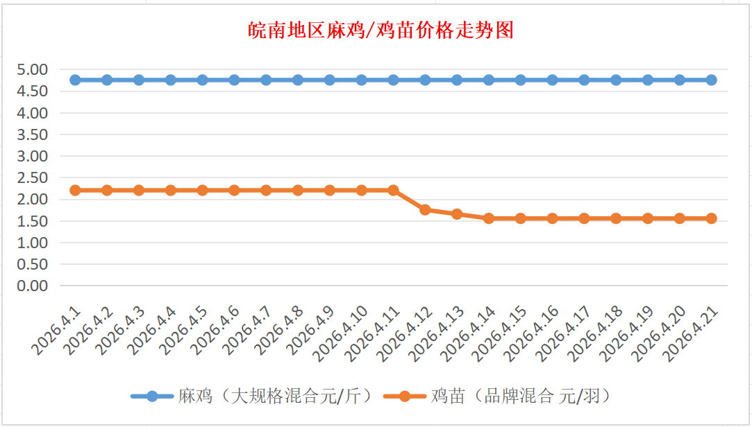 鸡病专业网独家信息:2026年4月21日皖南地区817-麻鸡行情最新走势