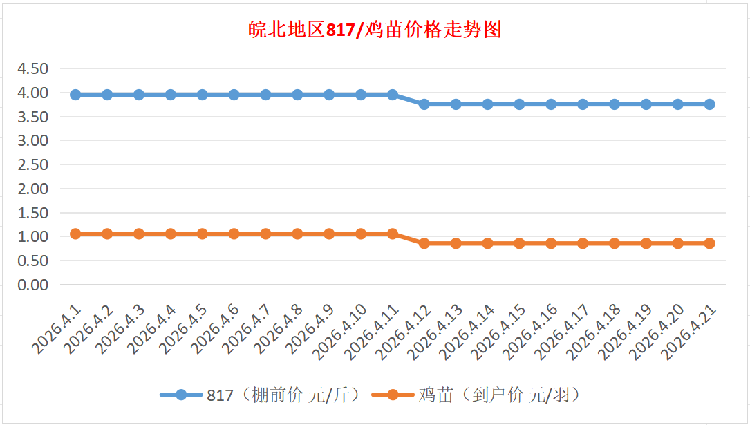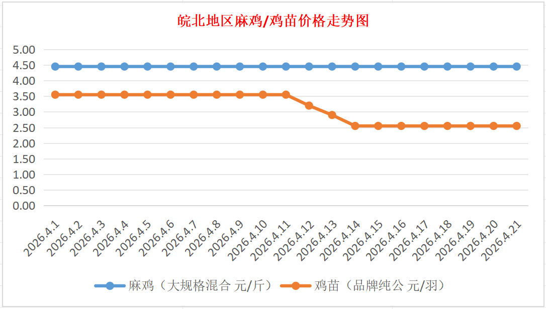 鸡病专业网独家信息:2026年4月21日皖北地区817-麻鸡行情最新走势