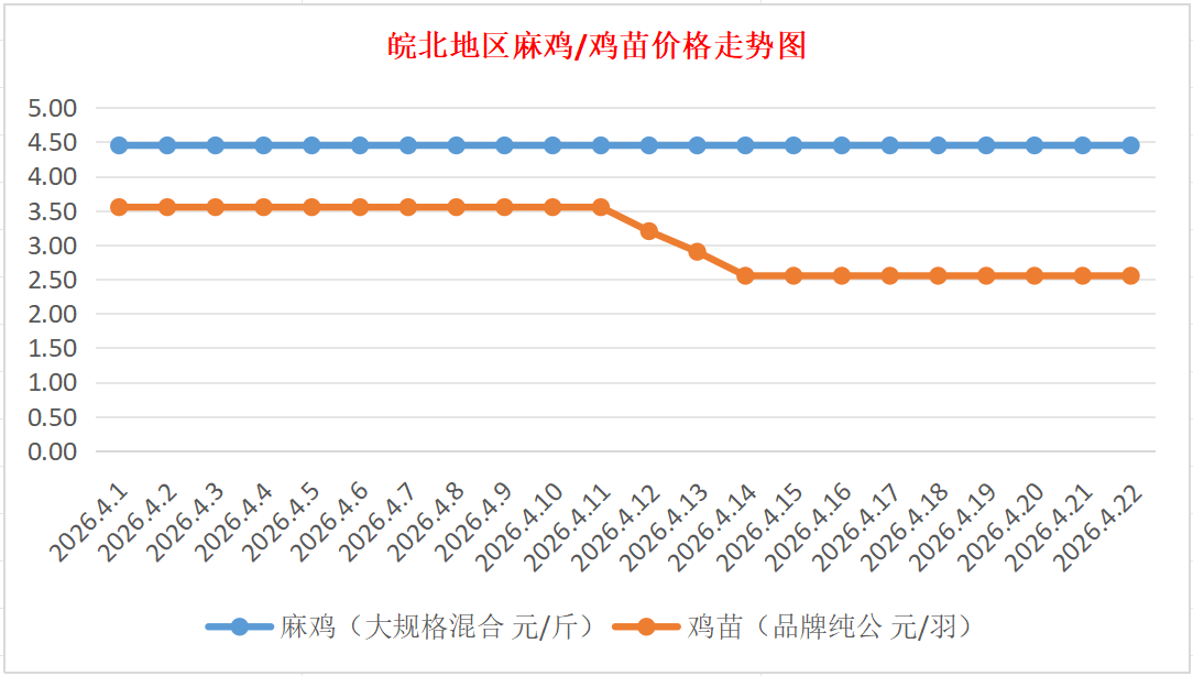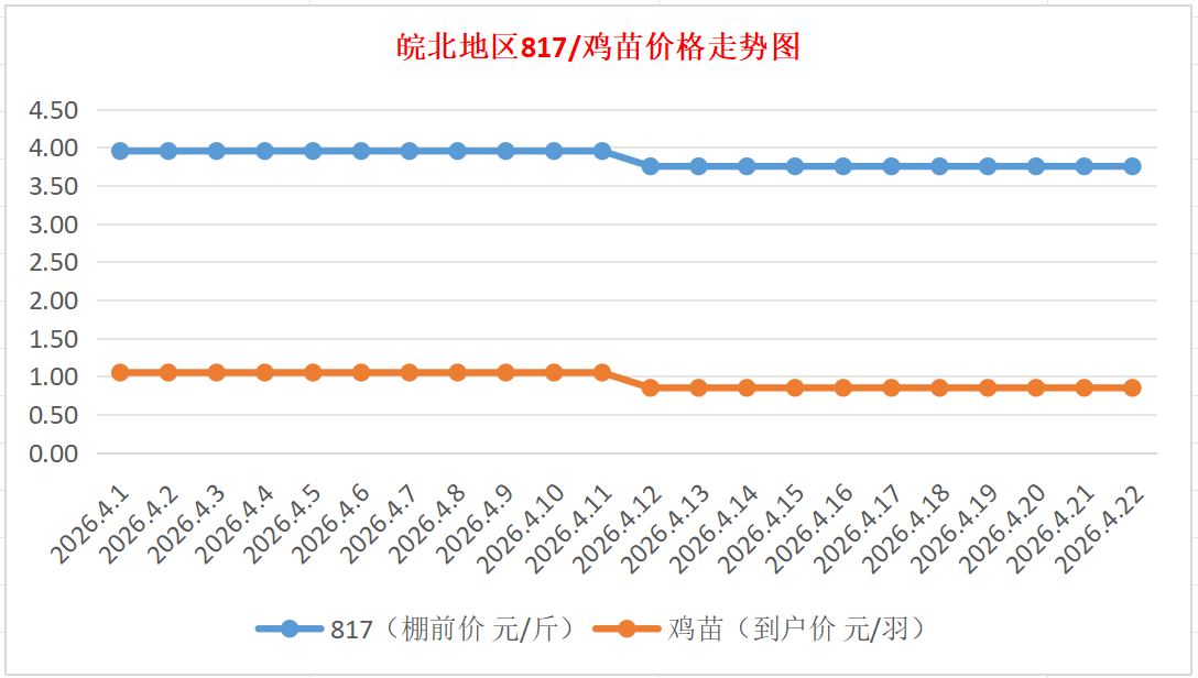 鸡病专业网独家信息:2026年4月22日皖北地区817-麻鸡行情最新走势