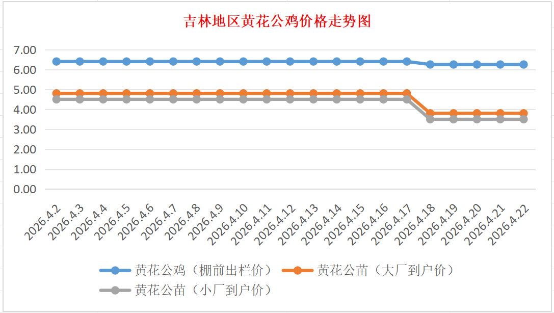 4月22日吉林黄花公鸡、鸡苗价格行情