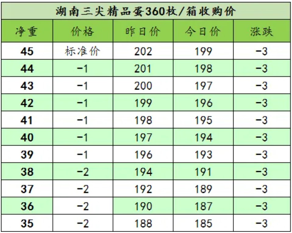 受全国大盘跌价行情联动影响,结合市场实际成交节奏与客户合作适配需求,我司今日鸡蛋报价顺势同步下调3元,贴合当下市场真实交易行情。整体来看,短期鸡蛋市场缺乏利好提振支撑,预计后续行情或将延续偏弱震荡调整态势,建议下游客户按需合理采销,密切关注后续产销库存及终端拿货变化动态。
