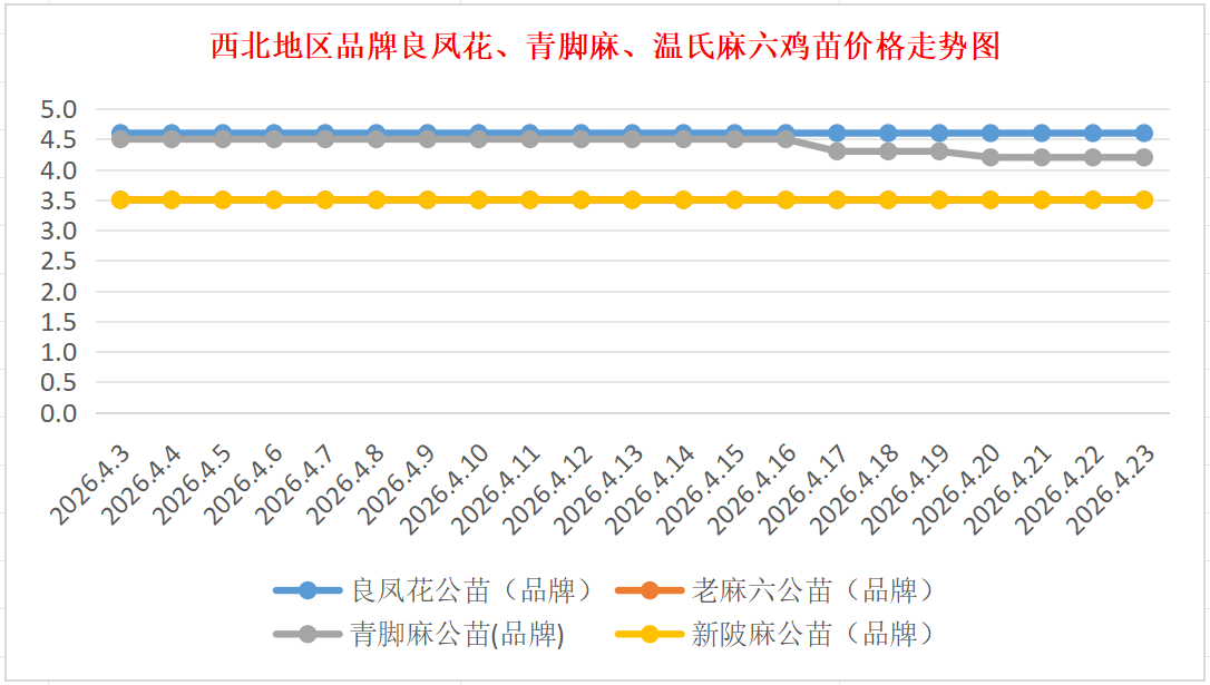 品牌新陂麻:价格稳定,到户价公苗4.50元/羽,稳。