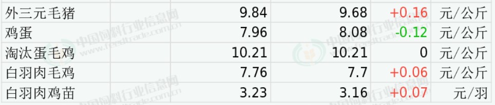 白羽肉毛鸡价格上涨。五一节前屠宰企业集中备货、祖代种源不足导致商品苗紧缺以及养殖端挺价支撑白羽肉鸡价格,不过终端消费偏弱、冻品库存偏高制约上涨空间,预计节前肉鸡行情震荡偏强。今日主产区山东白羽肉毛鸡均价7.44元/公斤,较昨日价格上涨0.05;辽宁均价8.02元/公斤,较昨日价格上涨0.10;主销区江苏均价8.42元/公斤,较昨日价格上涨0.04。
