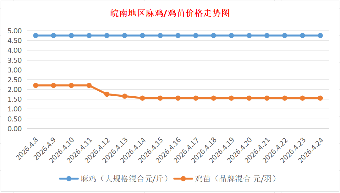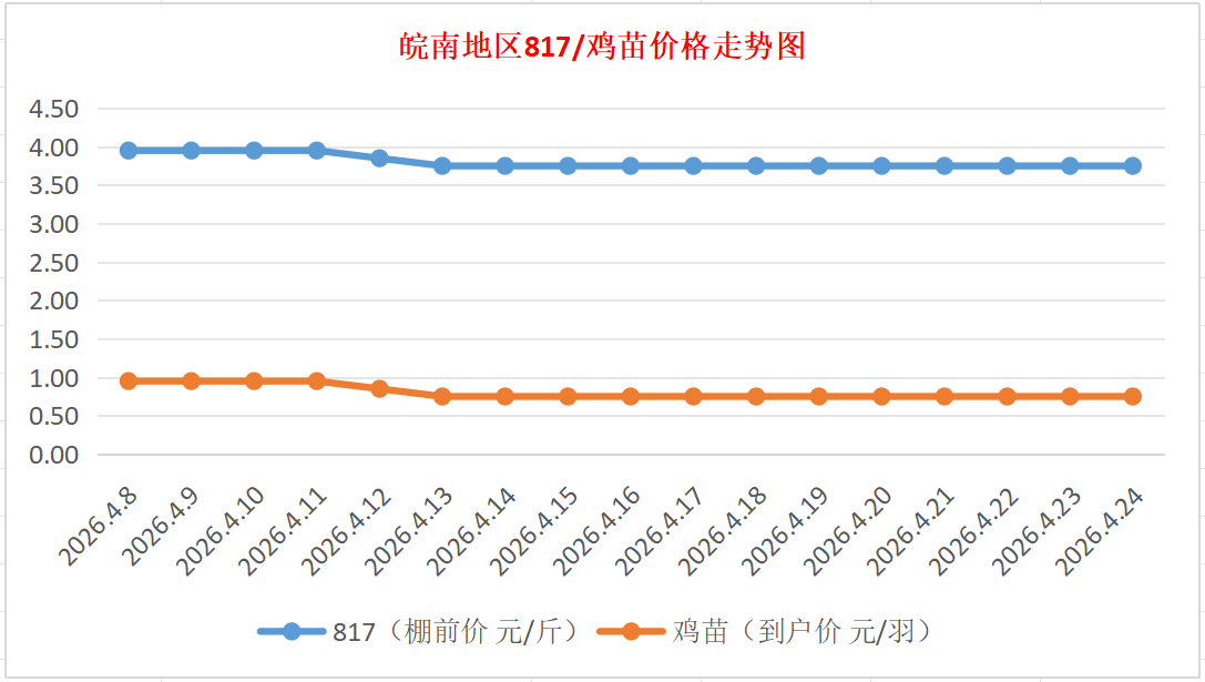 鸡病专业网独家信息:2026年4月24日皖南地区817-麻鸡行情最新走势