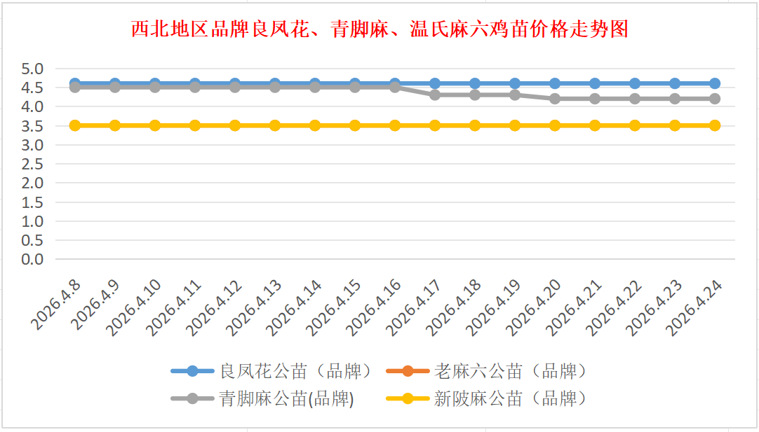 品牌新陂麻:价格稳定,到户价公苗4.50元/羽,稳。