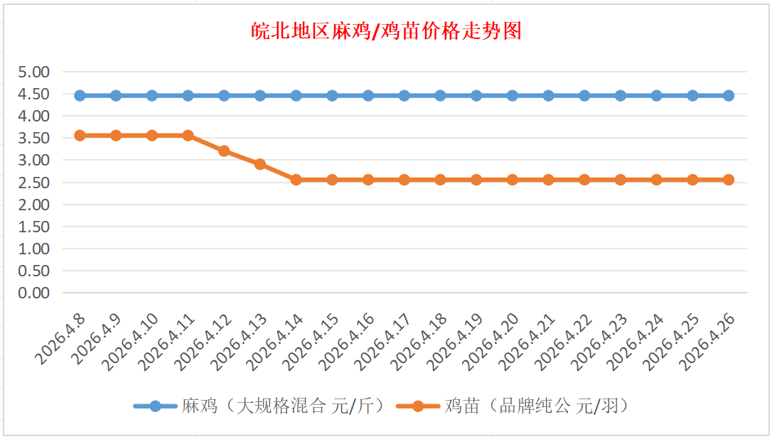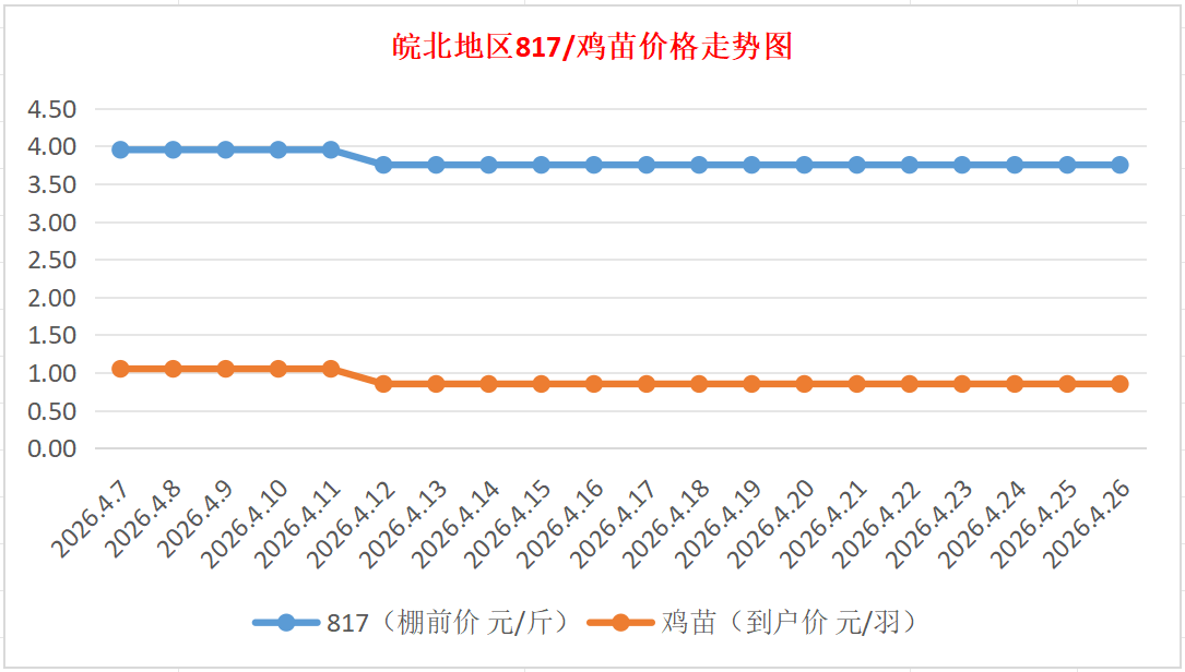 鸡病专业网独家信息:2026年4月26日皖北地区817-麻鸡行情最新走势