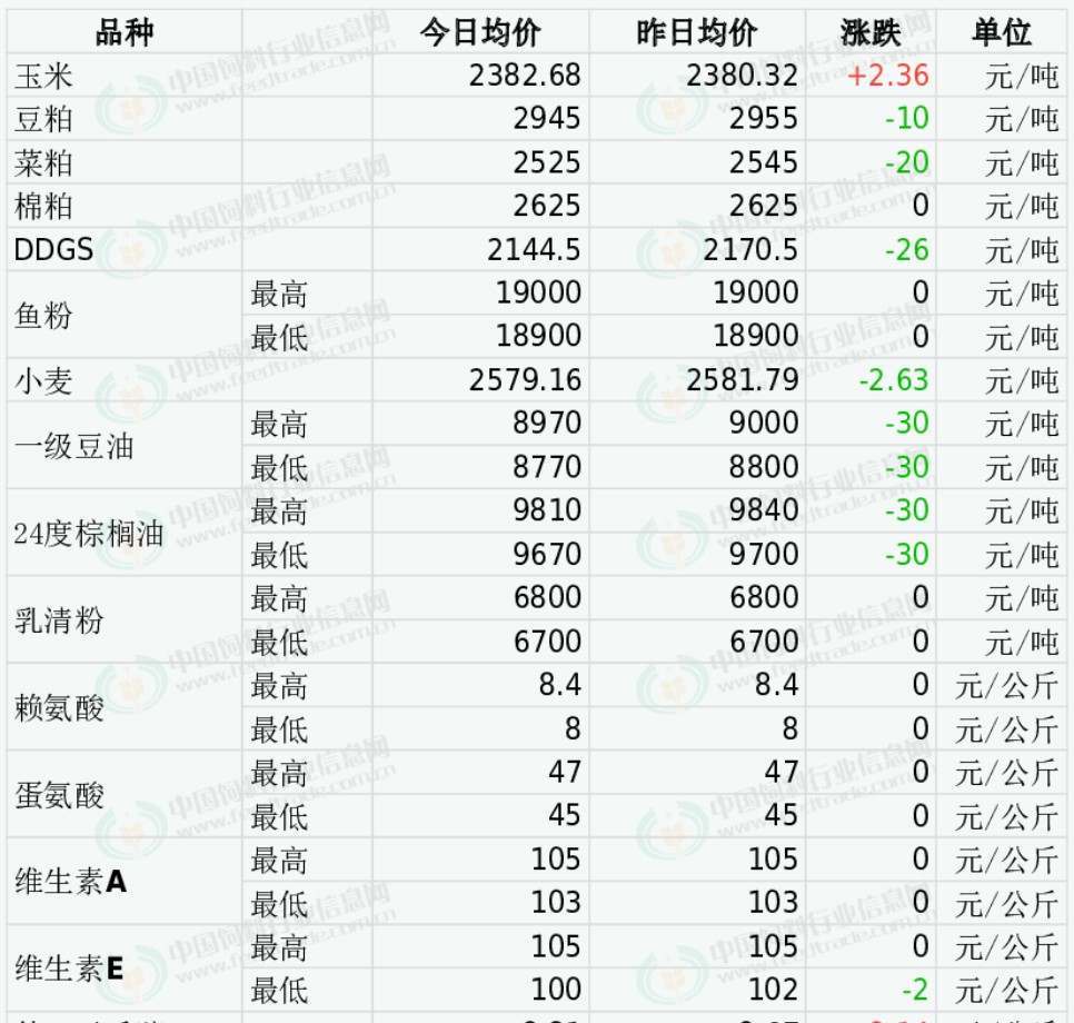 2026年4月24日国内饲料原料行情汇总