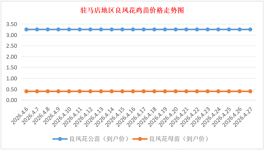 良凤花鸡苗:价格稳定,公苗到户价3.00-3.50元/羽,母苗到户价0.30-0.50元/羽,稳。