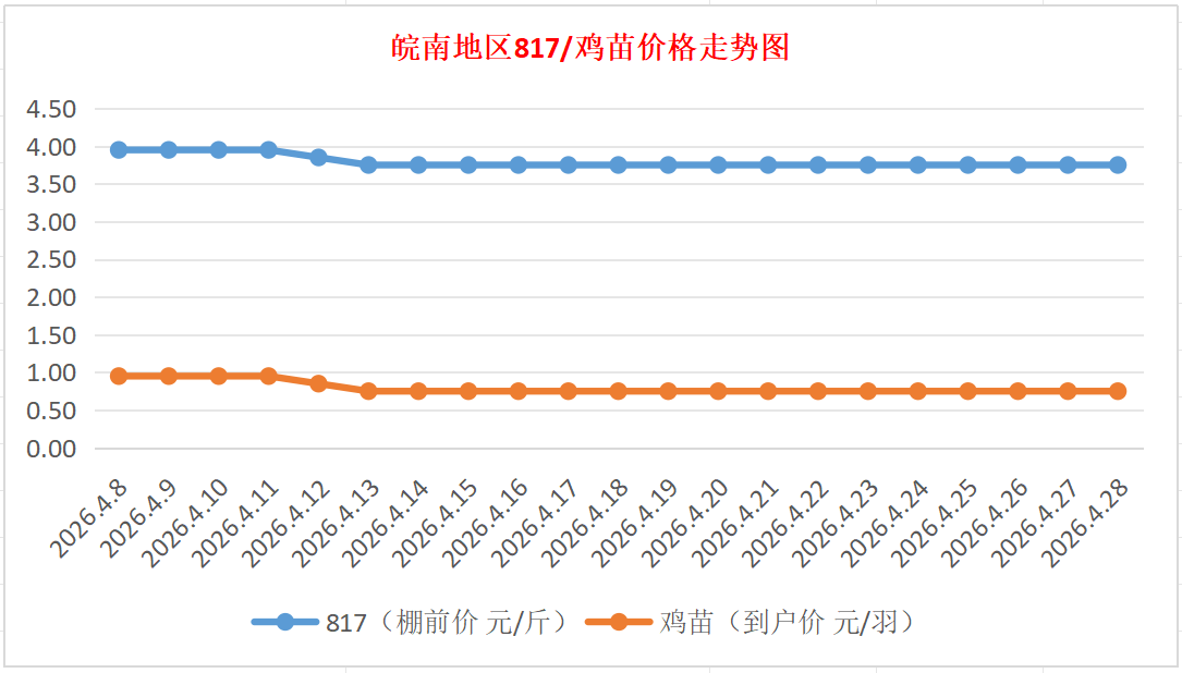 鸡病专业网独家信息:2026年4月28日皖南地区817-麻鸡行情最新走势