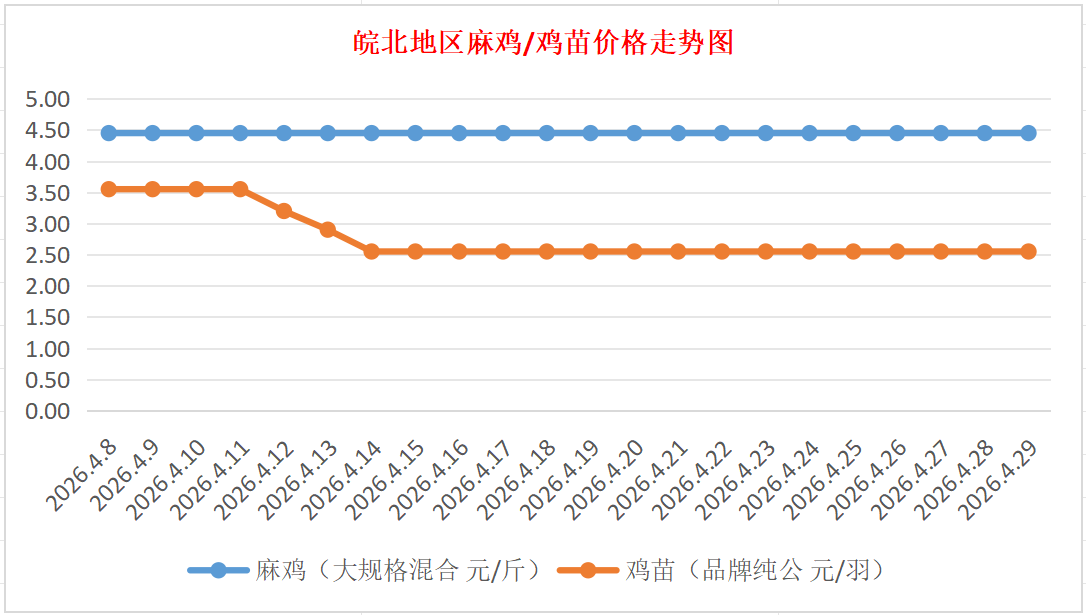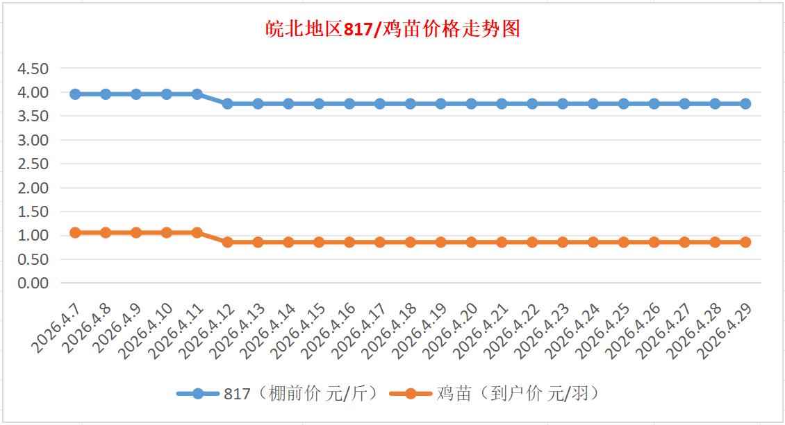 鸡病专业网独家信息:2026年4月29日皖北地区817-麻鸡行情最新走势
