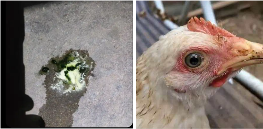 2。低致病性禽流感发病初期:畸形蛋、软蛋、蛋清稀薄、蛋黄颜色变淡,排绿色白色混合粪便,眼角变形。发病中后期:流泪、肿脸、鸡冠下垂水肿、鸡爪变干发红、产蛋急速下降2%-10%,死淘上升,白绿色水便。