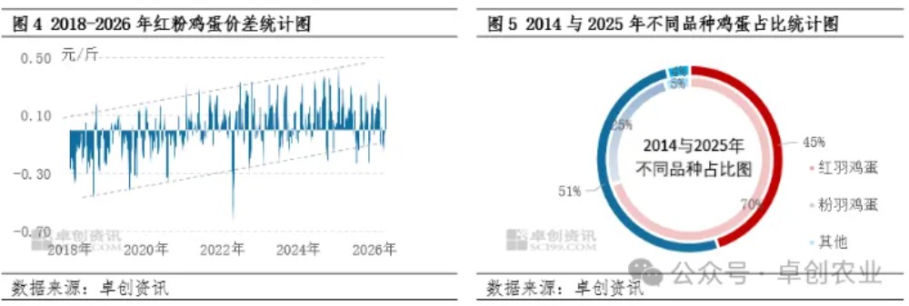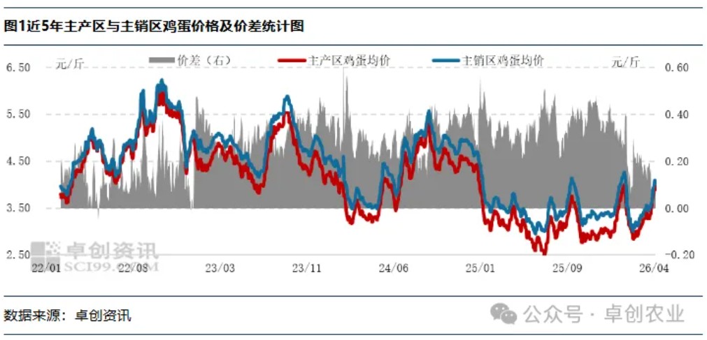 鸡蛋产能布局的均衡性,使得供应稳定性增强,但对于鸡蛋销售路径及产销价差影响逐步明显,而对于产能内部的存栏结构、红粉结构等发生差异性变化时,也会引起价格的结构性波动。