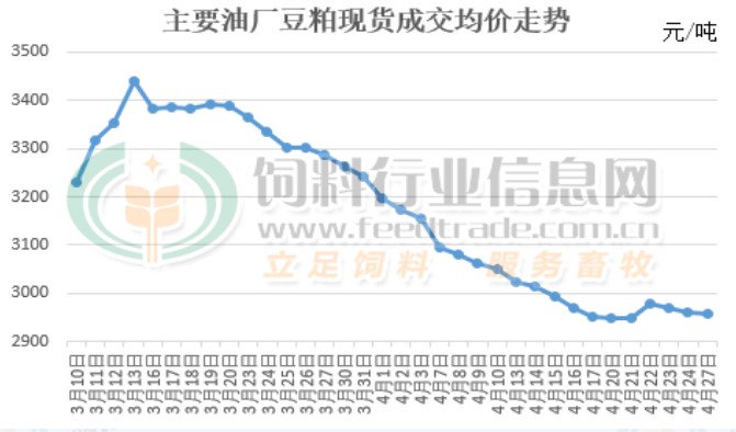 自3月中旬以来,大豆到港数量下降导致油厂减产停机,加之原油价格高企带动大豆价格上涨,但巴西大豆丰产上市后季节性供应压力凸显,国内养殖需求清淡且亏损较为普遍,令豆粕价格出现持续的下行走势。据统计数据显示,全国主要油厂43%蛋白豆粕现货成交均价自3月中旬开始下行,至4月20日跌破2950元/吨的低价,下跌幅度近500元/吨,已经降至2025年7月底以来的低点。