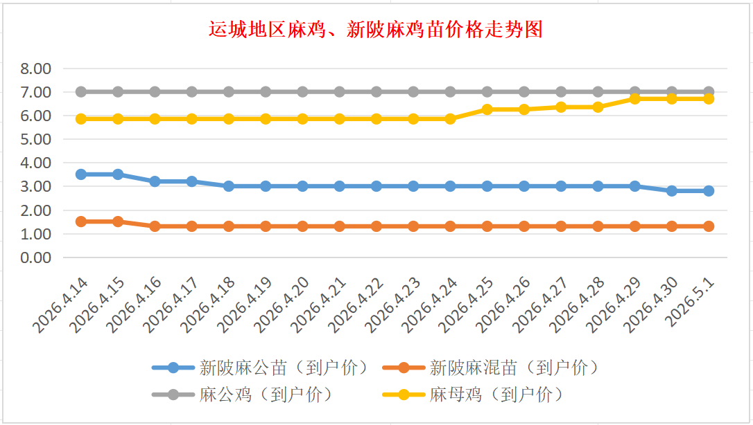 运城地区麻鸡、新陂麻鸡苗价格走势图(来源:鸡病专业网)